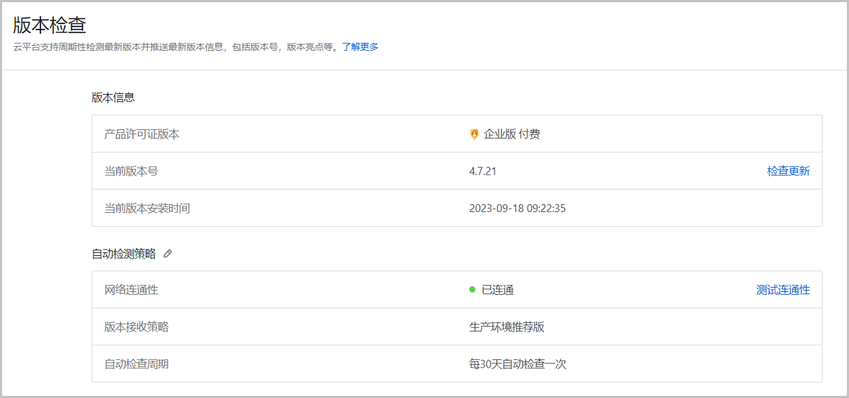 云平台实时展示最新的平台时间,配置时间源后,该时间会自动与时间源同步。若系统时间与时间源时间存在较大偏差,可通过强制同步快速调整,避免逐步调整耗费较长时间。