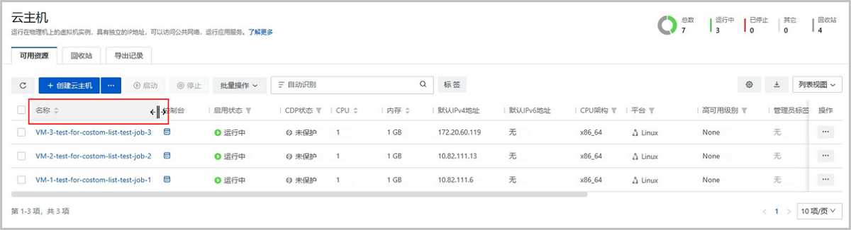 ZStack Cloud 4.6.0开始,列表页支持列宽调整,用户可左右拖拽表头扩大或缩小指定信息列的展示区域,避免列宽不足导致信息展示缺失。