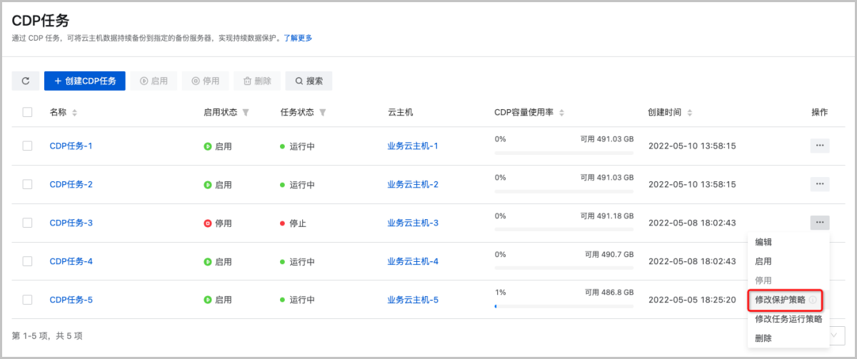 ZStack Cloud 4.4.6开始,支持为多台云主机创建CDP任务,统一提供CDP保护,减少批量场景下的重复操作,提高运维效率。