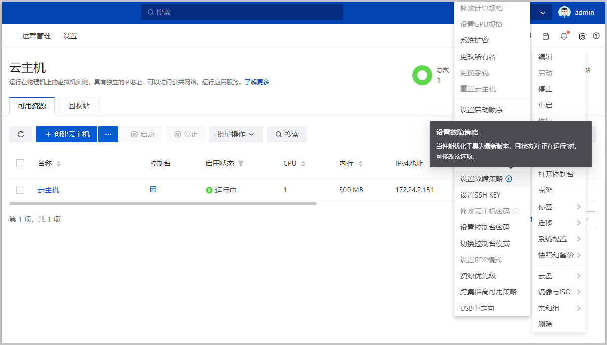 ZStack Cloud 4.2.0新增云主机故障检测功能,提供更精细的云主机状态监控和故障预警。