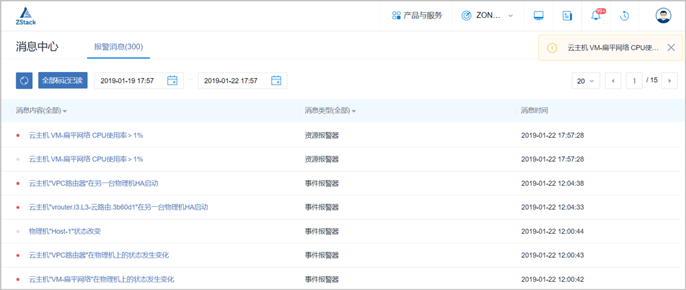 ZStack 3.3.0对ZWatch报警消息进行以下优化: