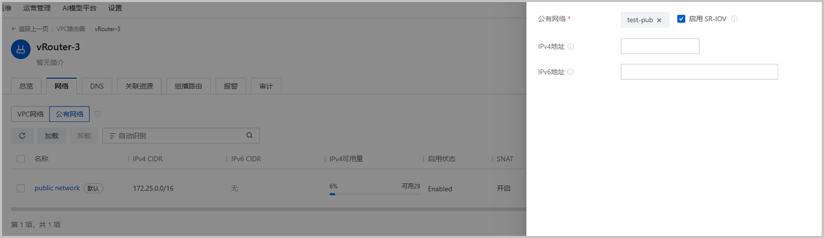 ZStack Cloud 5.3.0开始,使用openEuler 22.03操作系统的VPC路由器可为其下VPC网络上的IPv6网卡提供弹性IP服务,用户可绑定IPv6类型的弹性IP到IPv6或双栈网卡。