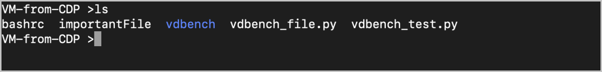 登录新建云主机(VM-from-CDP)的控制台,执行ls命令,查看目录下的文件。可以看到importantFile文件存在。