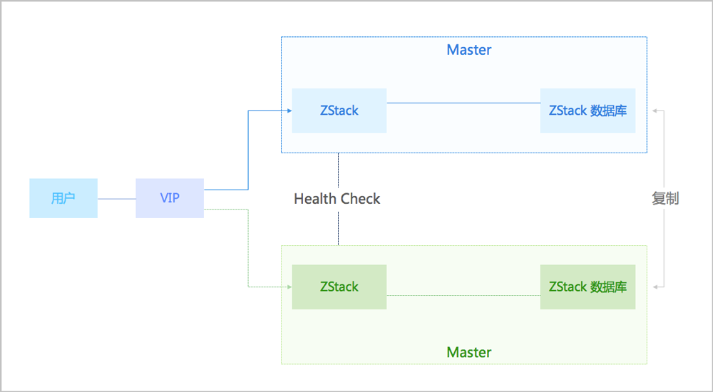 ZStack Cloud以单独的高可用套件形式,提供双管理节点物理机高可用功能。当其中任何一个管理节点失联,秒级触发高可用切换,从而保障管理节点持续提供服务。