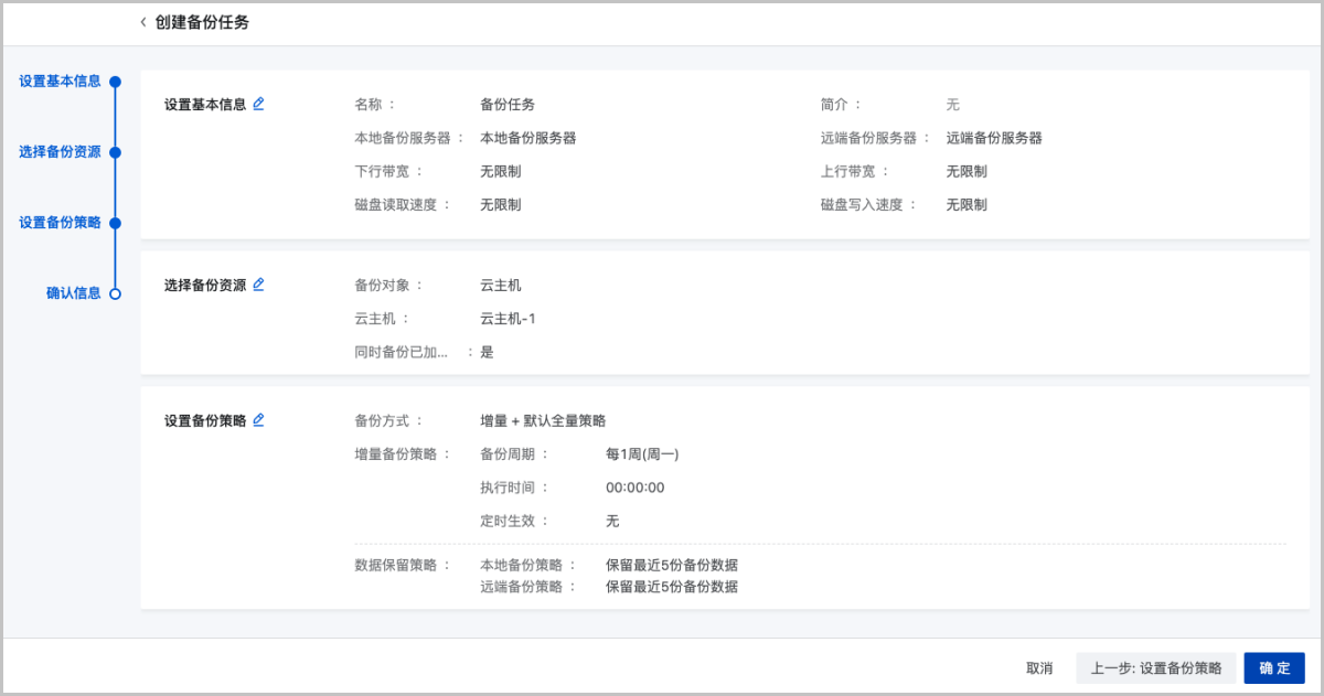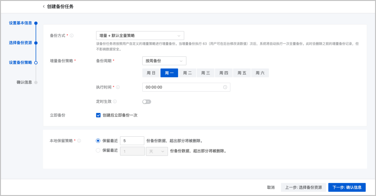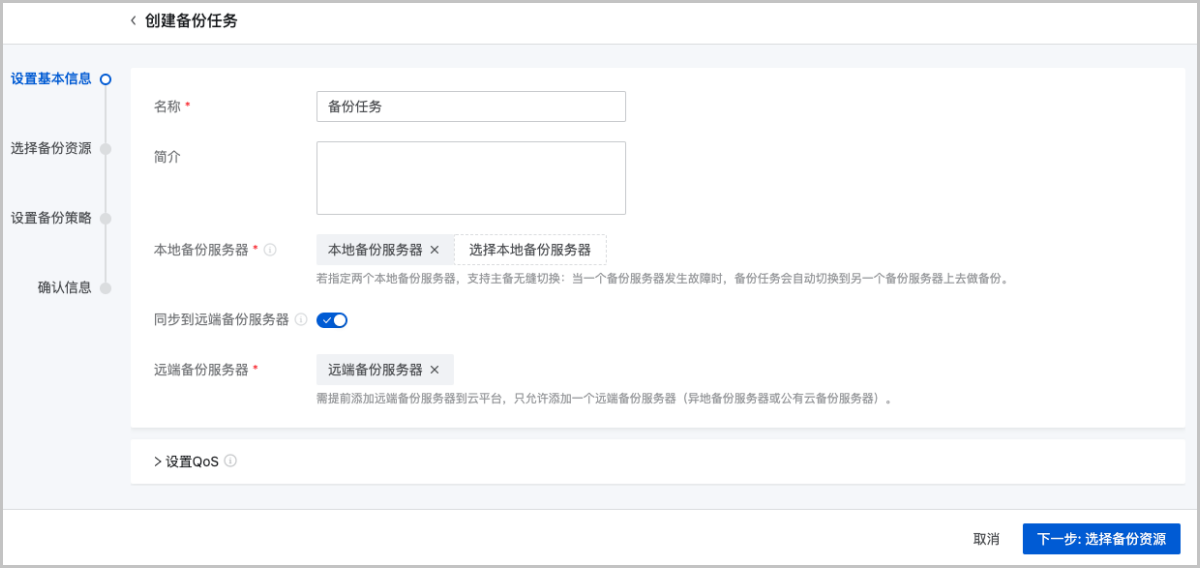 创建备份任务分为以下四步: