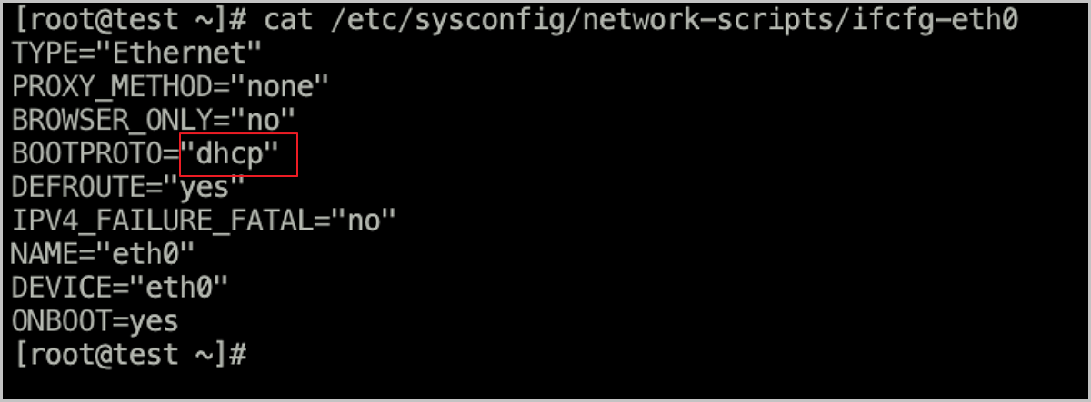 cat /etc/sysconfig/network-scripts/ifcfg-eth0