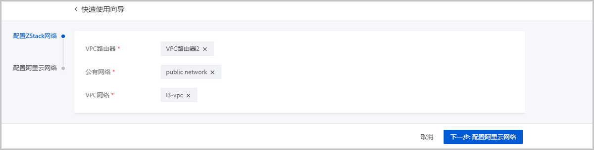 ZStack Cloud支持阿里云高速通道方式实现本地VPC网络与阿里云VPC网络的互通。