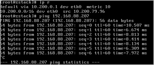 ping通。 至此,ZStack Cloud私有云云主机和阿里云ECS云主机即可使用阿里云高速通道的方式实现互通。