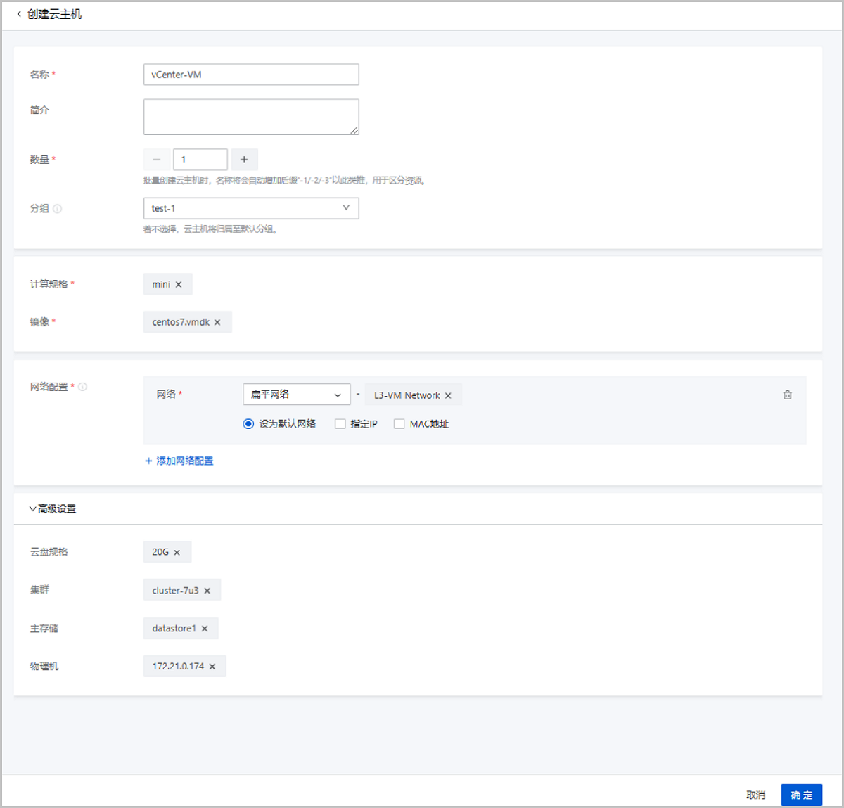 以下介绍ZStack Cloud本地创建vCenter云主机的方法。