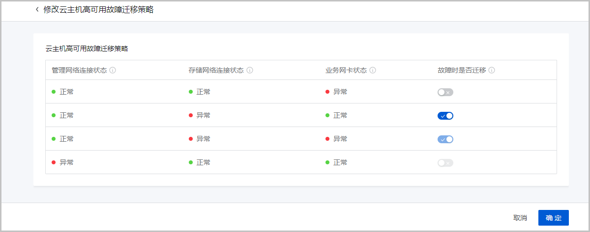 图 2. 配置云主机高可用故障迁移策略