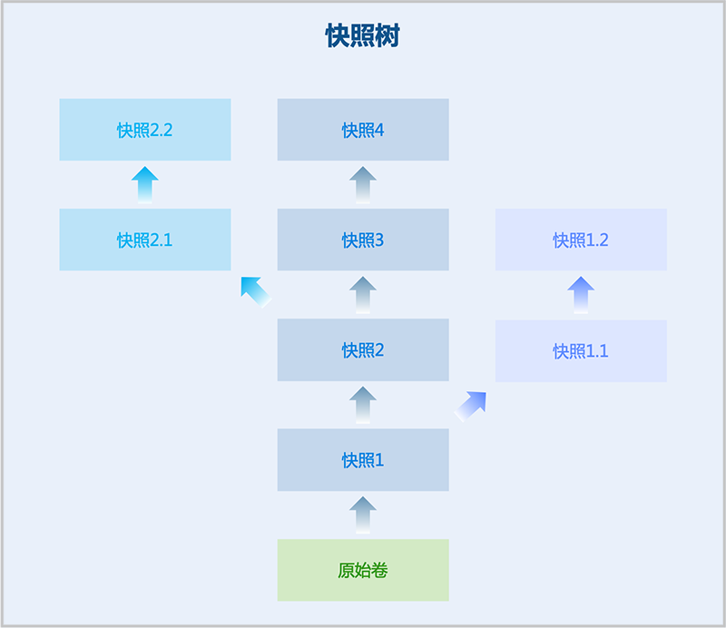 • 快照链:磁盘的一组快照组成的关系链,快照树的每一个分支都是一条快照链。