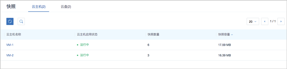 在ZStack私有云主菜单,点击 ,进入云主机界面,选择某一云主机,在云主机详情页的云主机快照子页面,可查看云主机快照树中每个快照节点容量。