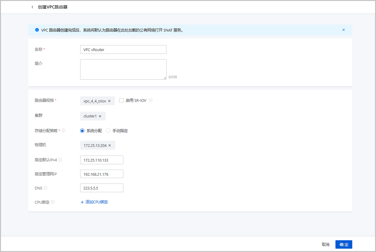 在ZStack Cloud主菜单,点击,进入路由器规格界面,点击创建路由器规格,弹出创建路由器规格界面。