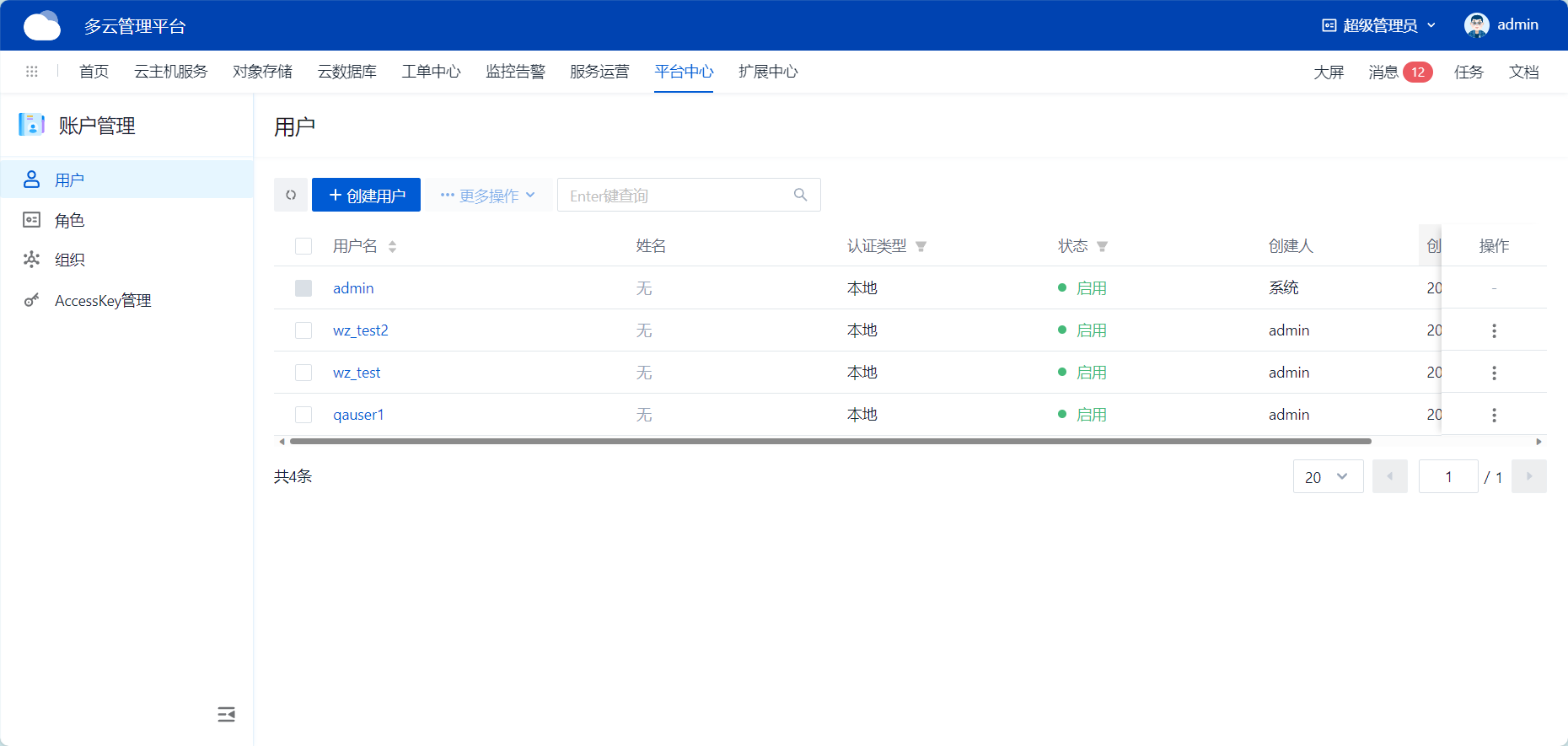ZStack CMP有一套完整的账户体系,通过使用不同权限角色绑定用户,以此进行管理。