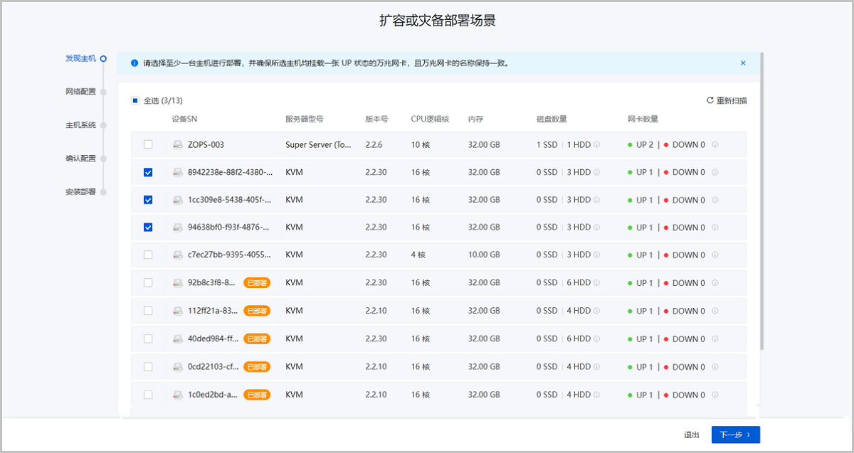 点击确定,完成扩容或灾备部署场景。