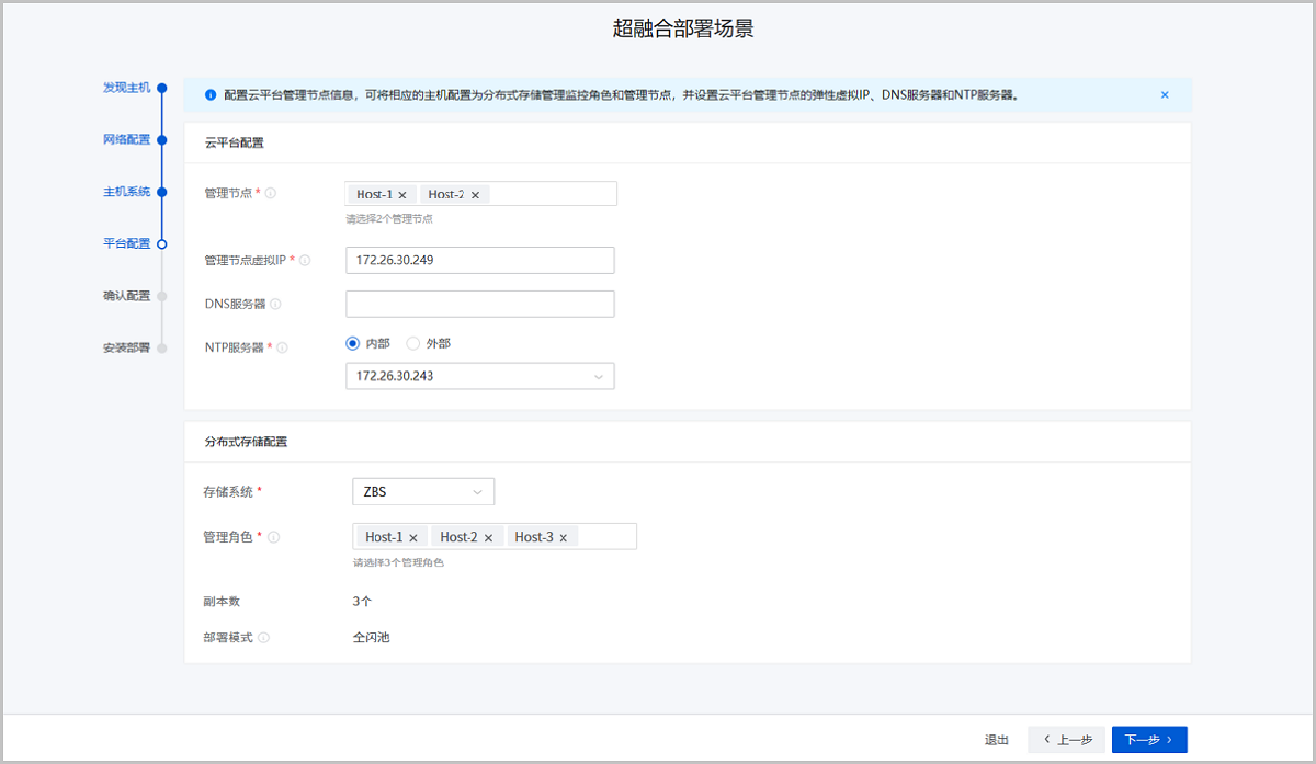 配置网络基础环境,按照实际网络规划对管理网络、存储网络、业务网络、BMC网络进行配置。