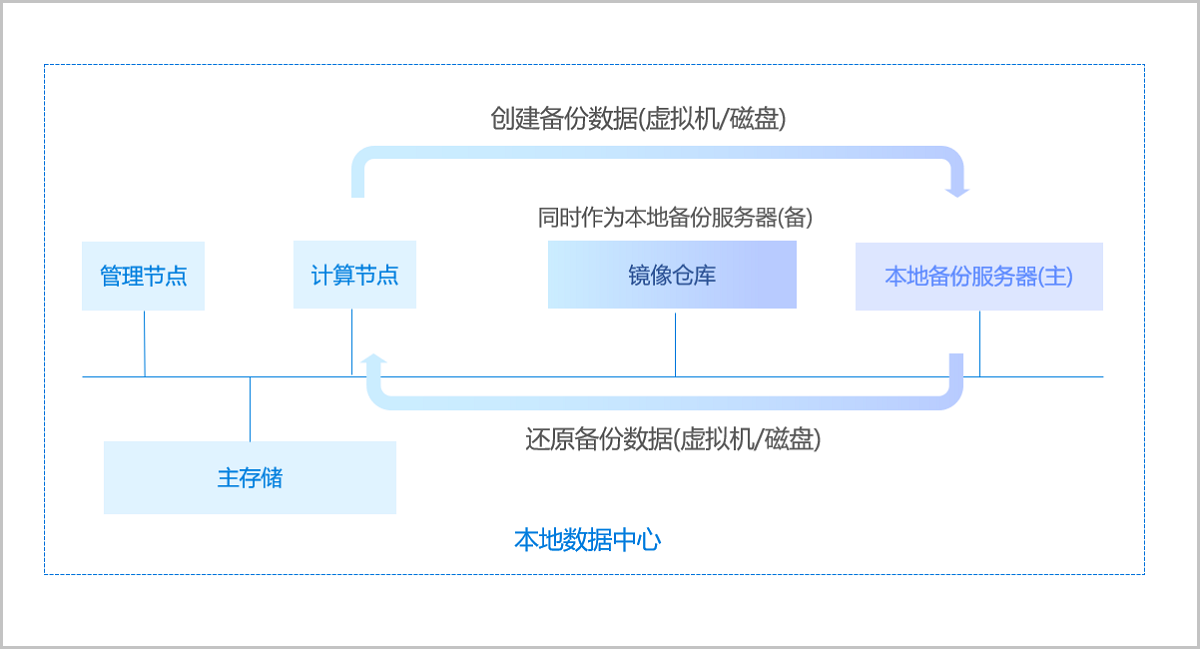 支持将本地部署的镜像仓库作为本地备份服务器,用于存放本地虚拟机/磁盘的定时备份数据。同时本地备份服务器支持主备无缝切换,有效保障业务连续性。