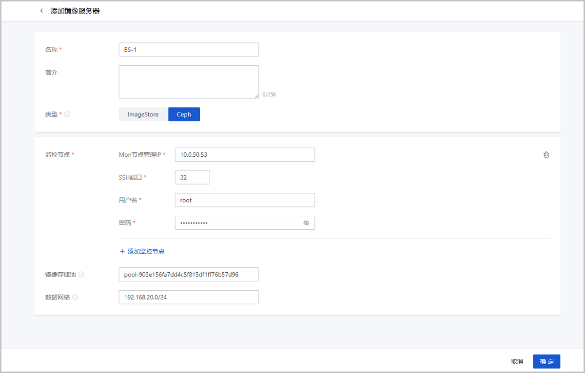 可点击添加监控节点继续添加Ceph监控节点。