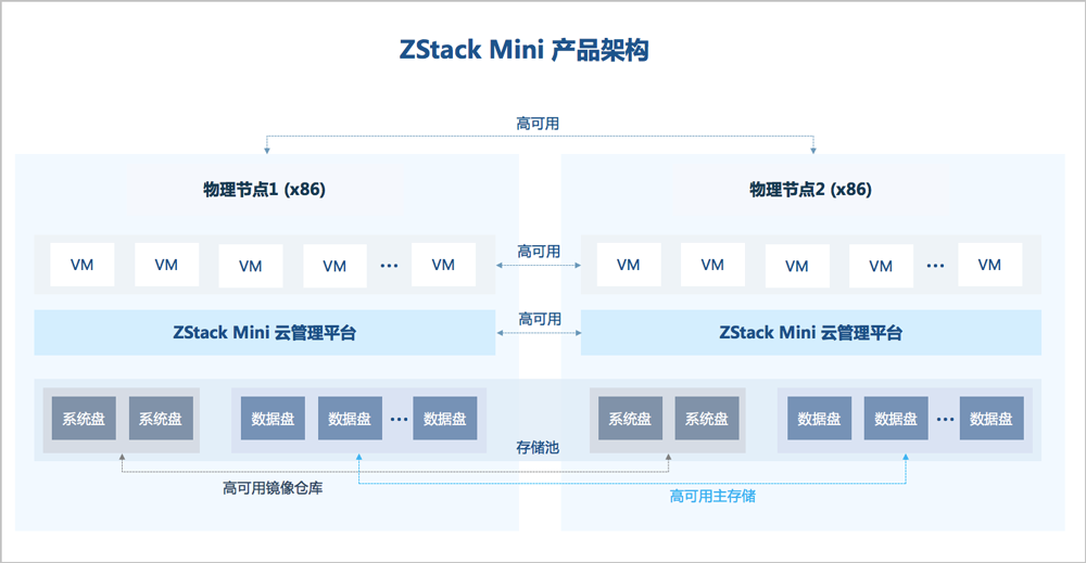ZStack Mini结合了轻量化的ZStack云引擎与高度集成化的双子星服务器,提供对数据中心计算、存储、网络资源的高效管理与调度。支持开箱即用,用户可通过ZStack Mini快速创建云主机、分配云盘、自动配置云主机网络、实时监控资源信息,快速实现业务上线以及灵活便捷的业务运维。