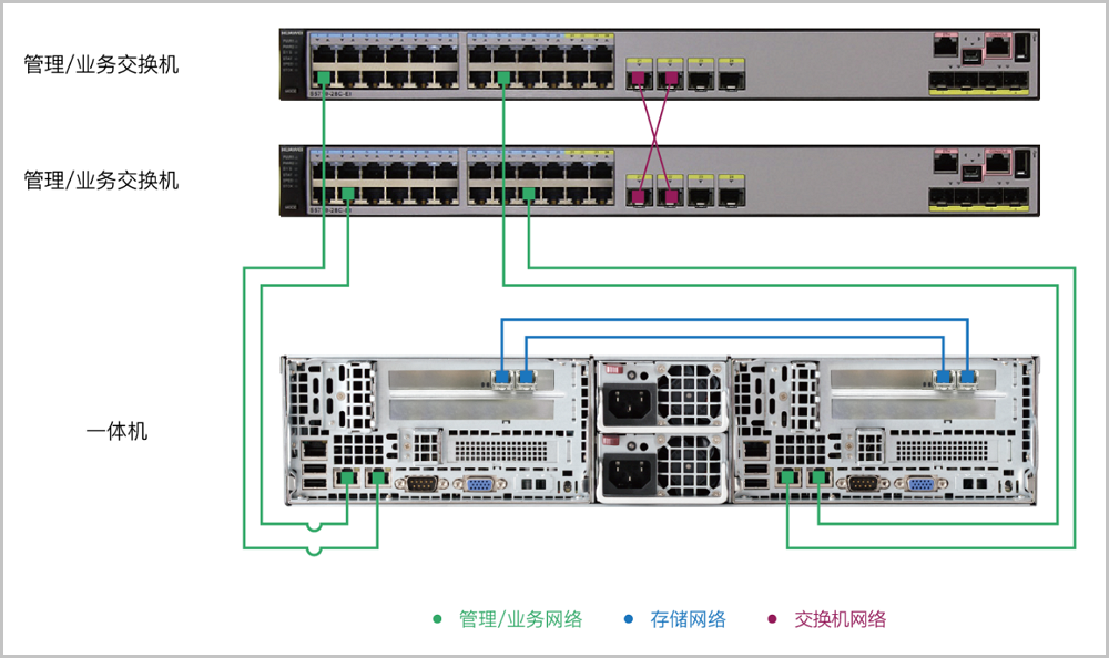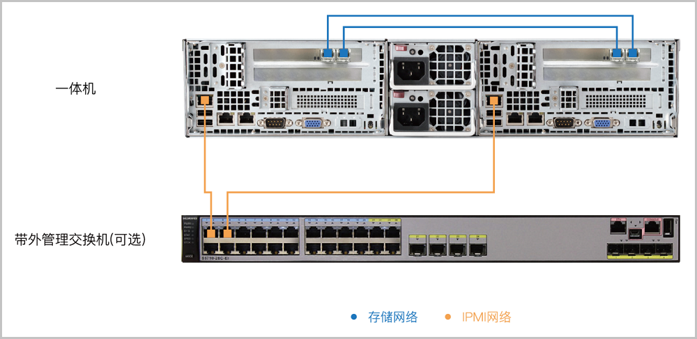 网络端口(每节点) | IPMI 带外管理、管理&业务双千兆网口、存储高速互联双万兆网口 | |