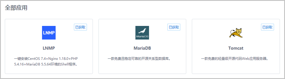 点击获取按钮下载应用镜像至系统,即可安装该应用。安装完成后将在我的应用页面中展示,更多详细信息请参考典型使用流程。