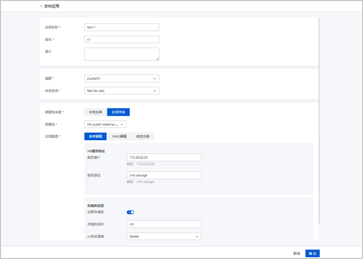 发布应用指将Chart部署包发布到集群,部署一个应用实例。用户可在应用或制品仓库界面以两种方式发布应用,本节主要介绍通过应用界面的发布方式。