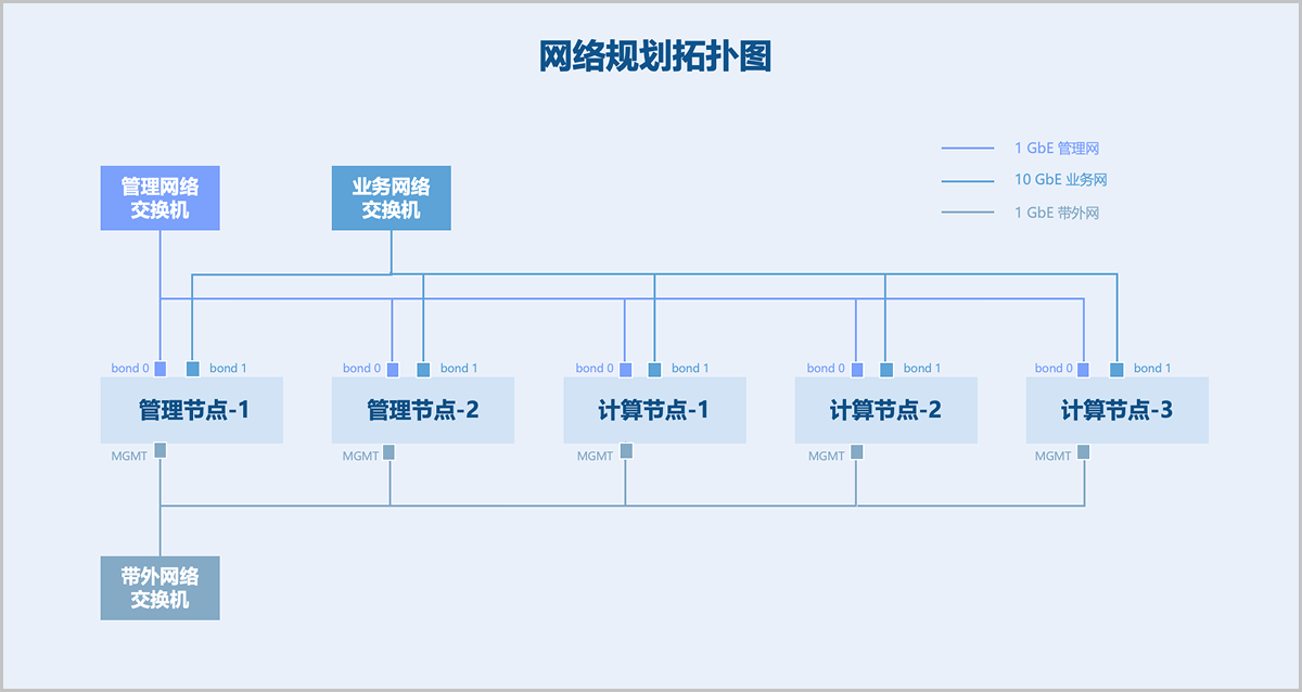 您需要根据生产环境的实际业务需求,妥善规划服务器资源。在资源充足的大型数据中心场景,推荐将两台服务器作为管理节点,用于管控整个虚拟化平台。这两个管理节点可提供管理节点高可用功能,当其中任何一个管理节点失联,系统将自动触发秒级高可用切换,从而保障管理节点持续提供服务。在小型数据中心场景,也可仅选择一台服务器作为管理节点。