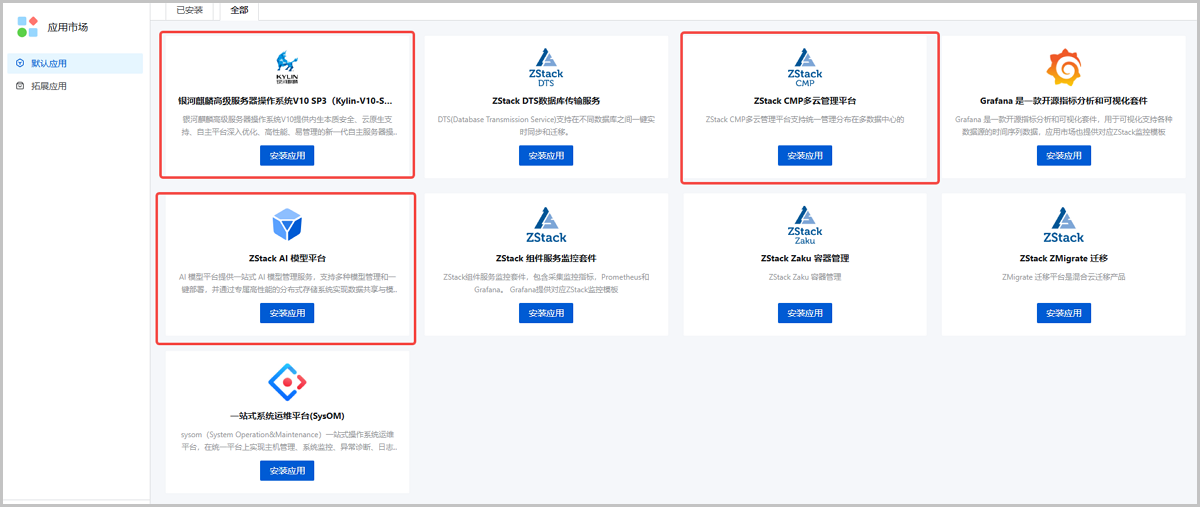 应用市场新增Kylin-V10-SP3、ZStack AI模型平台、ZStack CMP